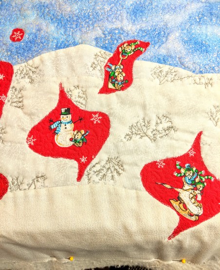 The results (so far) include 3 small art quilts, which all have a Winter holidays theme~~
