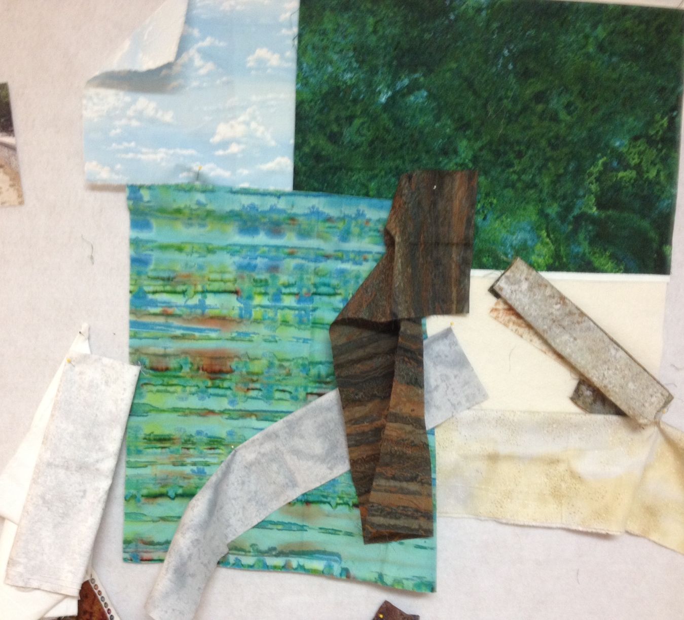 To create this piece, first different fabrics were auditioned to see which ones could create the image I wanted.