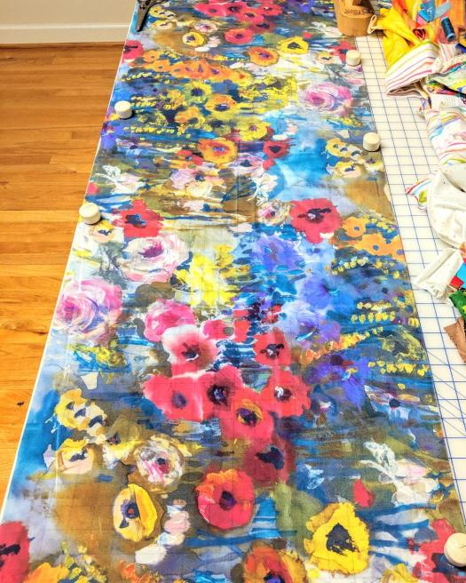 I remembered and dreamed about the painterly, fantastically-colored printed silks on long tubes, filling large barrels, since that first visit! So finally this year, I purchased a half yard of the most beautifully colored Italian silk, whose print looks like an Impressionistic watercolor painting!